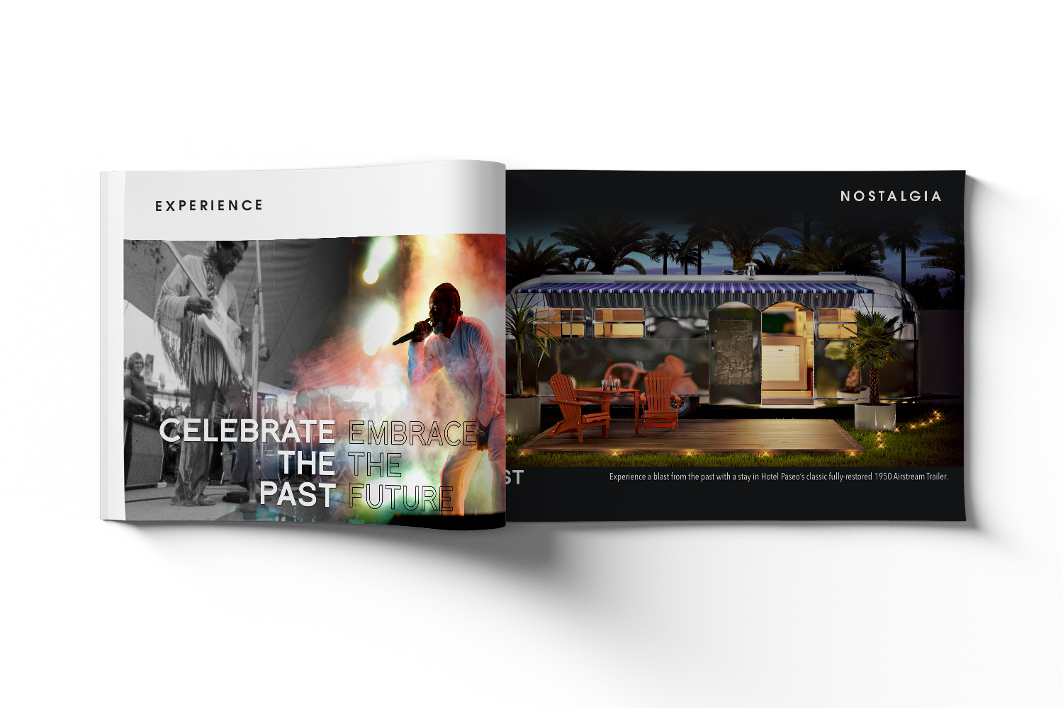 Starting from scratch, we spearheaded the creative vision and wrote the brand book for Hotel Paseo. From graphic design elements to the addition of a vintage airstream in the courtyard, we created a signature experience unlike anything else. Media RED’s branding of Hotel Paseo was so highly regarded by Marriott executives that a deck was created for future ‘Autograph Collection’ hotels to emulate Media RED’s branding.